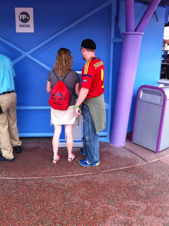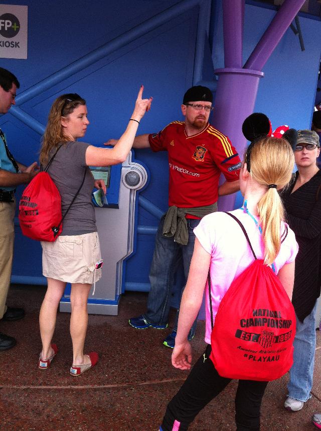 Reorganizing the Fast Passes. Kathy, Greg, Sam (with ears), Meredith